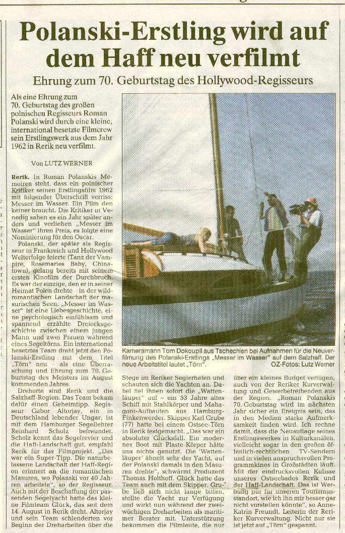 direktornak: a Törn!-t a forgatókönyvvel együtt augusztus 18-án, a